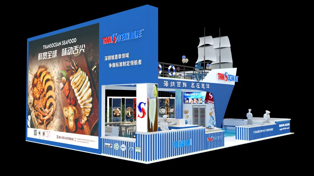 作为鱿墨章专业加工商,越洋食品将现场展示从源头直采的优质水产品:秘鲁鱿鱼系列的须片、鱿鱼圈、刻花块等深加工产品,搭配墨鱼、章鱼、雪蟹、波龙等国际优势资源,构成覆盖冷冻、裹粉、调理全品类的产品体系。无论是面向餐饮端的预制菜解决方案,还是供应海外市场的标准化原料,都能一站式品鉴。
